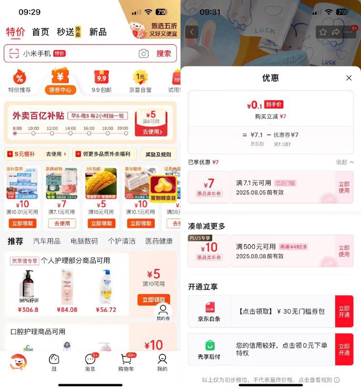 🚦 0撸垃圾袋,领券中心领7.01-7,签到随便领个红包