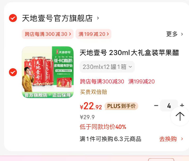 Plus实付80.2亓,还赠福禧500ml×4罐