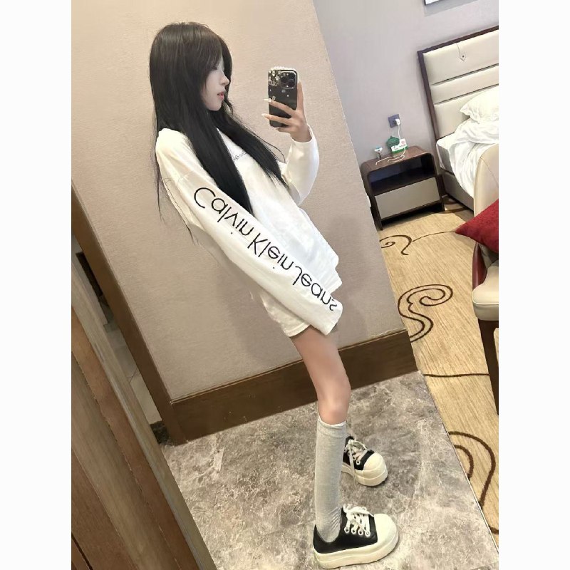 100%纯棉ins风美式设计感字母长袖t恤女2025韩版简约慵懒学生上衣