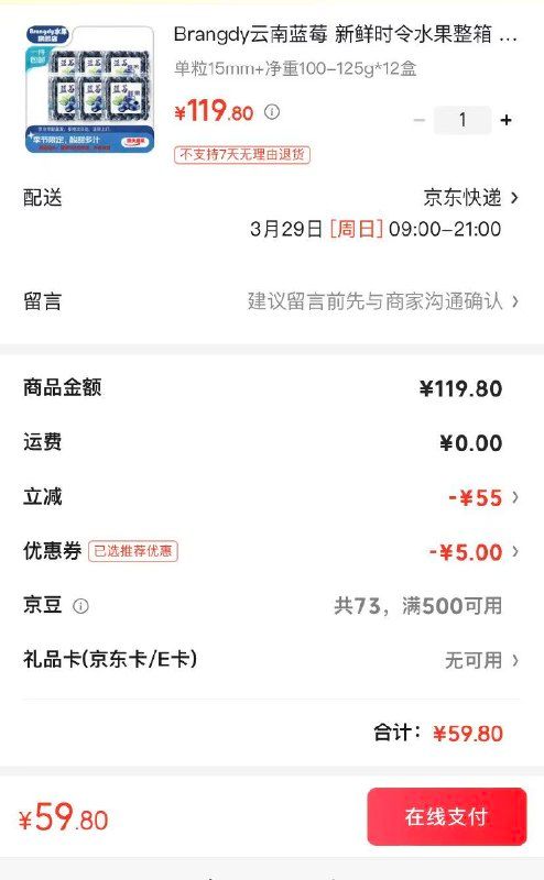 自营京仓冷链配送,隔日达