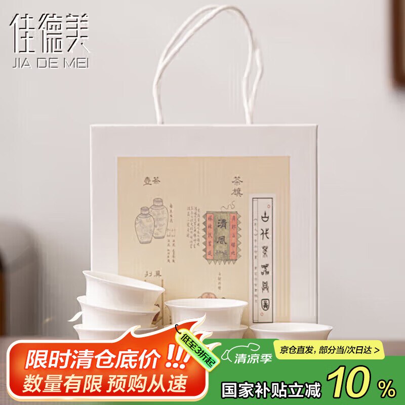 佳德美羊脂玉白瓷风铃杯功夫茶杯6个礼盒装