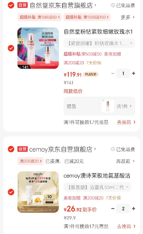 拍2件Plus凑后53.84元;赠5000京豆